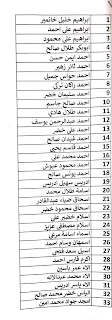 على الأسماء المدرجه بالقوائم أدناه مراجعه مقر الدائره في الموصل حي الوحدة يوم الثلاثاء المصادف ١٦/٢ وذلك لاصدار استمارة الماستر كارد لهم مع جلب المستمسكات الاصلية للطرفين والحاله واستمارة التقديم الإلكتروني