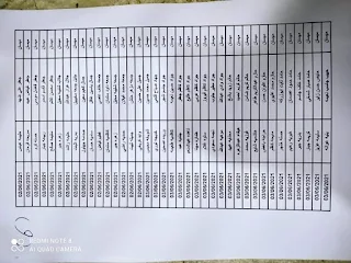 كما موضح في القوائم ادناه مقابل كل اسم (موعد المراجعه)